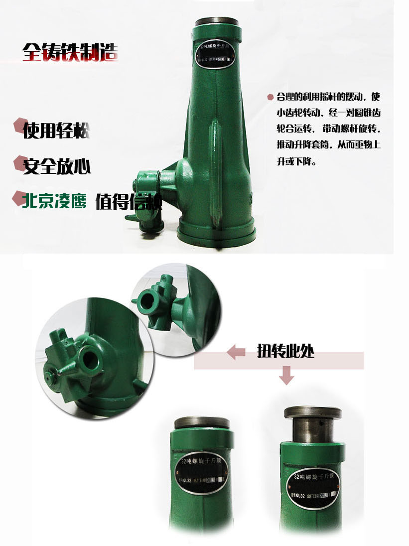 (1)頂升重物前,注意方正千斤頂的位置,使其保持垂直,以防止螺桿偏斜彎曲及由此引起的事故;