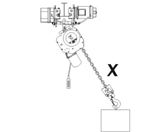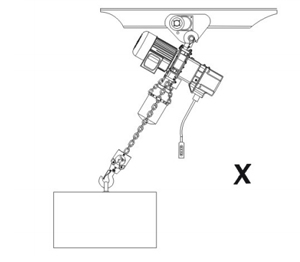 1、勿以吊鉤末端吊物應掛入安全舌片內以策安全如下圖: