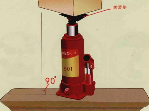 5、千斤頂應(yīng)與荷重面垂直,其頂部與中午的接觸面間應(yīng)加防滑墊層。