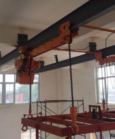 4、提升起重不煩么的場(chǎng)所,如升降口提升設(shè)備、材料等,可采用手動(dòng)單軌小車(chē)配以手拉葫蘆及簡(jiǎn)易的搬運(yùn)設(shè)備。
