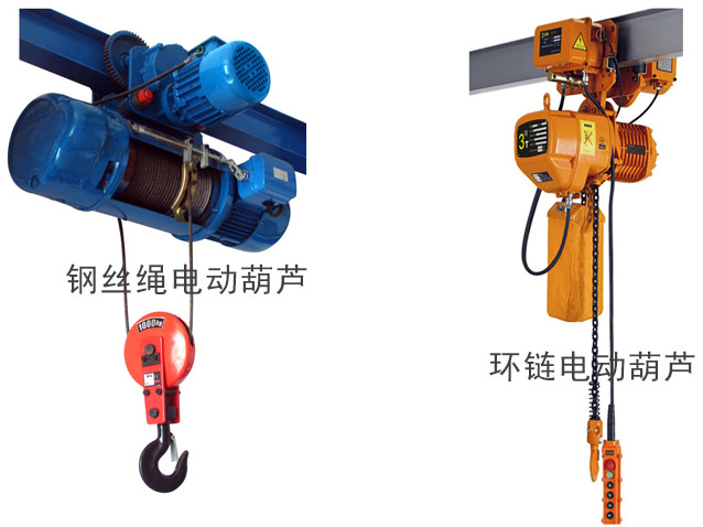 電動葫蘆按其結(jié)構(gòu)形式可分為環(huán)鏈電動葫蘆和鋼絲繩式電動葫蘆。環(huán)鏈式電動葫蘆是用環(huán)狀焊接鏈與吊鉤連接作起吊索具之用。因起升高度較低,廣泛用于低矮廠房或露天環(huán)境。而鋼絲繩電動葫蘆是用鋼絲繩與串鉤連接作起吊索具之用。