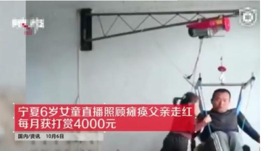 日前看到網(wǎng)絡(luò)上這樣篇文章,是6歲女童直播照顧癱瘓父親,依靠每月四千打賞生活,這是一個(gè)堅(jiān)強(qiáng)的故事,讓我們來回顧一下這個(gè)事情的原委: