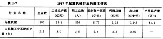 表1-7列出了1987年起重機械行業(yè)經(jīng)綜合評價后的基本情況。