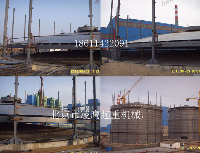 金屬儲罐分類方式很多,根據(jù)頂部結(jié)構(gòu)形式可分為固定拱頂儲罐和浮頂儲罐,其中浮頂儲罐又可分為外浮頂儲罐和內(nèi)浮頂儲罐。目前,金屬儲罐的安裝方法主要有正裝法和倒裝法兩種。①正裝法:在儲罐罐底板鋪設組焊完成后,罐壁板自下而上依次組裝焊接,最后組焊完成罐頂、抗風圈及頂端包邊角鋼等,較適用大型浮頂罐。主要包括水浮正裝法、架設正裝法(外搭腳手架正裝法和內(nèi)掛腳手架正裝法)等。②倒裝法:在儲罐罐底板鋪設組焊完成后,先組焊頂層壁板及包邊角鋼、組焊罐頂板,然后自上而下依次組焊每層罐壁板,直至最底層壁板,較適用大型固定罐。主要包括中心柱組裝法、邊柱倒裝法(液壓頂升和電動葫蘆提升等)、充氣頂升法和水浮頂升法等。