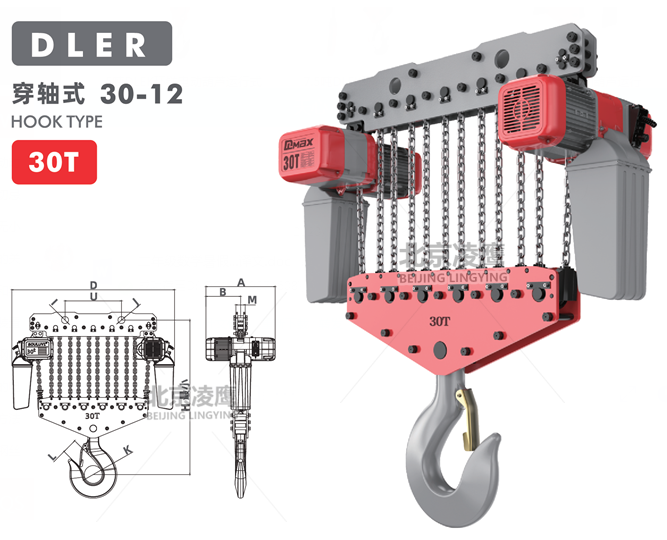 30噸DLER環(huán)鏈電動(dòng)葫蘆穿軸式重物吊上吊下都有極限開(kāi)關(guān)裝置,使電機(jī)自動(dòng)停止,以防止鏈條超出,確保安全。