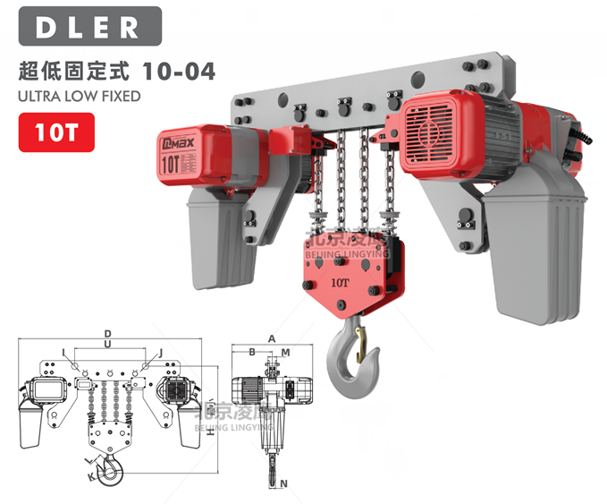 10噸DLER環(huán)鏈電動葫蘆超低固定式采用進口FEC/G80超強熱處理合金鋼鏈條。