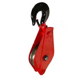 吊鉤式單輪滑車是一種重要的吊裝工具,它結構簡單,使用方便,能夠多次改變滑車與滑車組牽引鋼索的方向和起吊或移動運轉物體,特別是由滑車聯合組成的滑車組,配合卷揚機,桅桿和其他起重機械,廣泛應用在建筑安裝作業(yè)中。