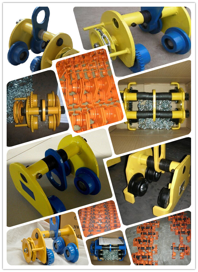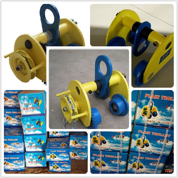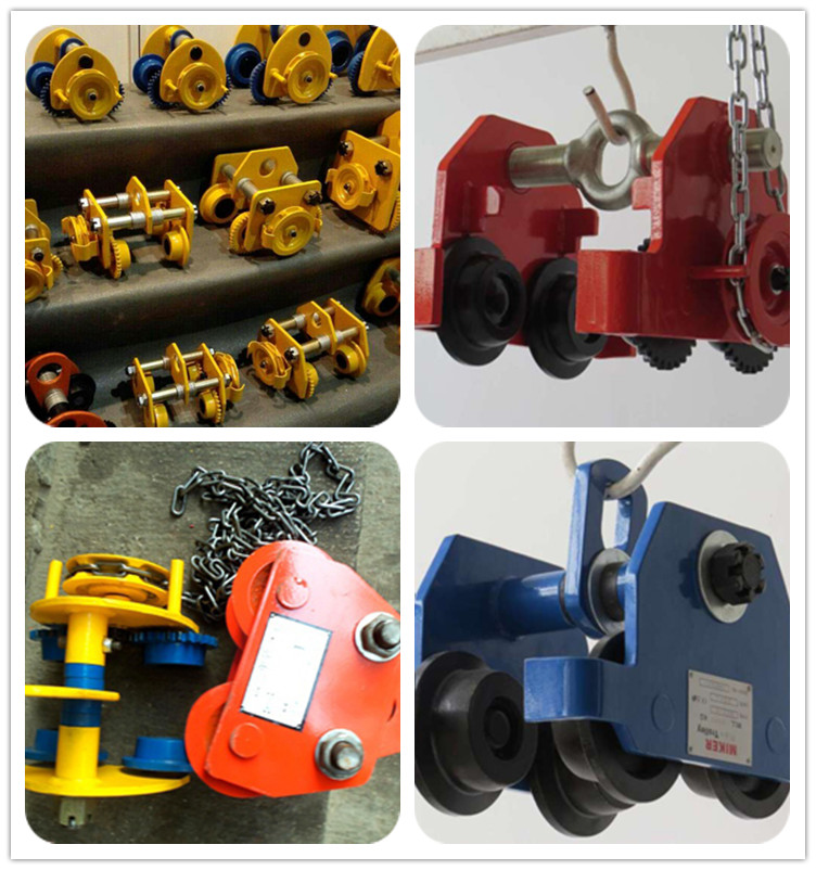 手動(dòng)單軌小車(chē)可懸掛在各式小型吊車(chē)或安裝在固定的工字鋼上,配以手拉葫蘆組成完整的起重機(jī)械。對(duì)于工作效率要求不高的倉(cāng)庫(kù),車(chē)間和電站,可作為安裝,檢修設(shè)備或吊運(yùn)重物之用。